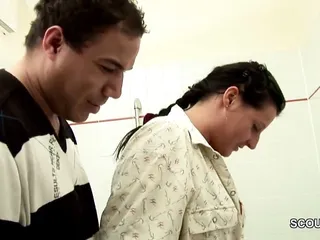 Milf mit großen Brüsten und Brille verführt den Freund ihres Sohnes in Strapse – Hardcore Cougarsex mit Titten Besamung